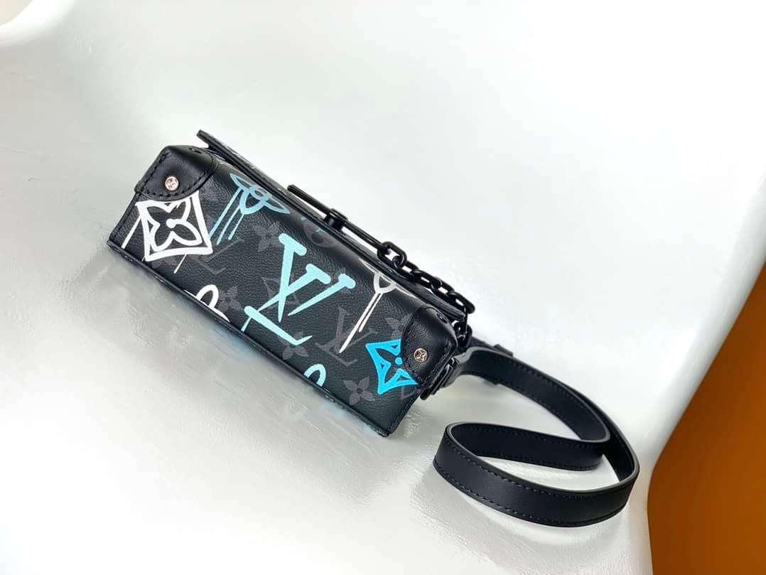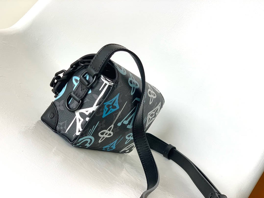 Steamer mini handbag redraws the Monogram pattern on the canvas surface, declaring the free atmosphere of graffiti art. Chain and pin elements highlight the classic touch of Virgil Abloh, and the adjustable shoulder strap makes it comfortable to carry. The magnetic flap opens to ample compartments to securely store daily essentials. Size: 18.0 x 11.0 x 6.5 cm (LxHxW)