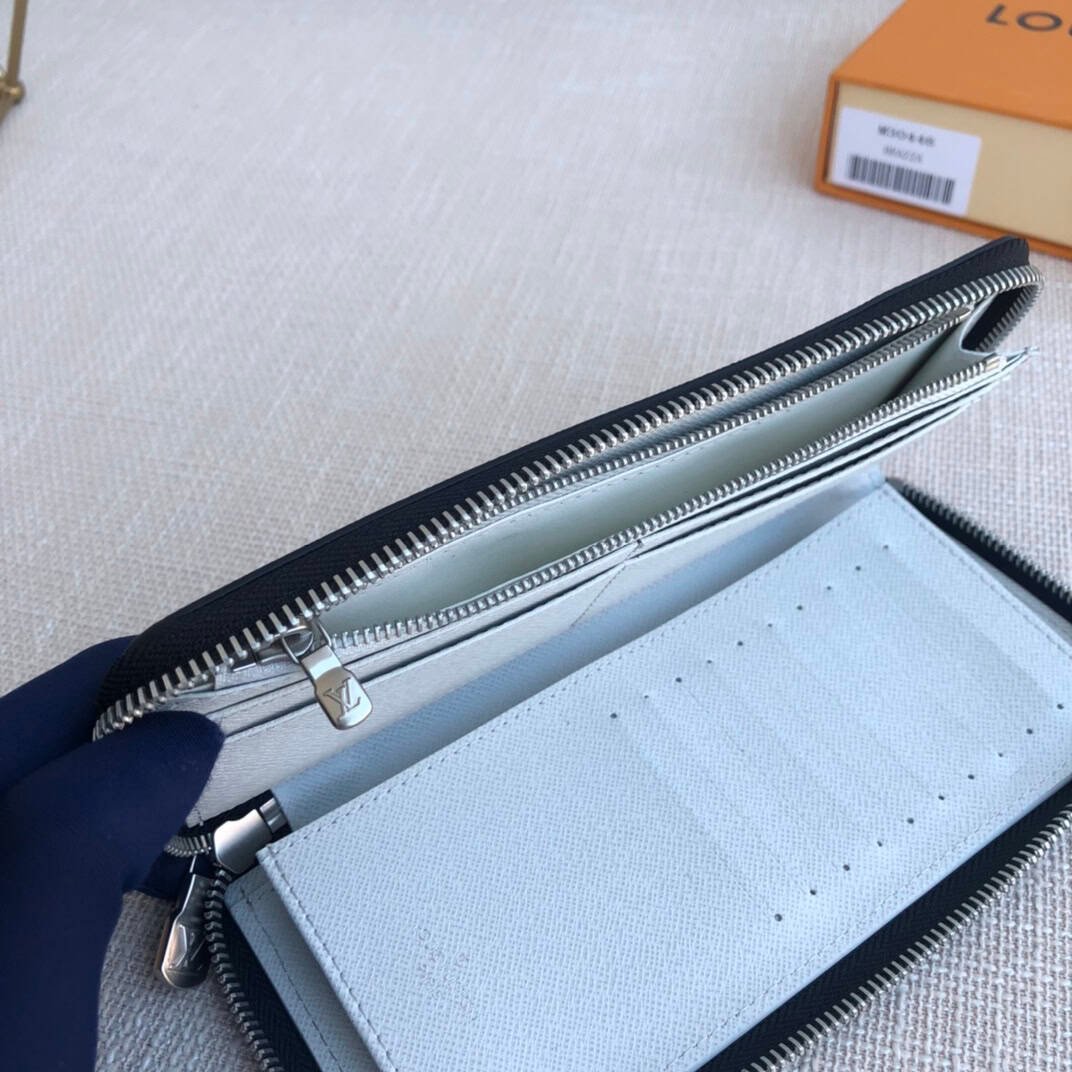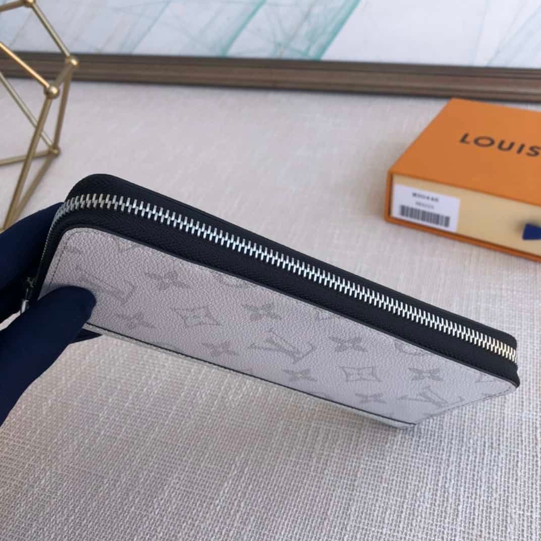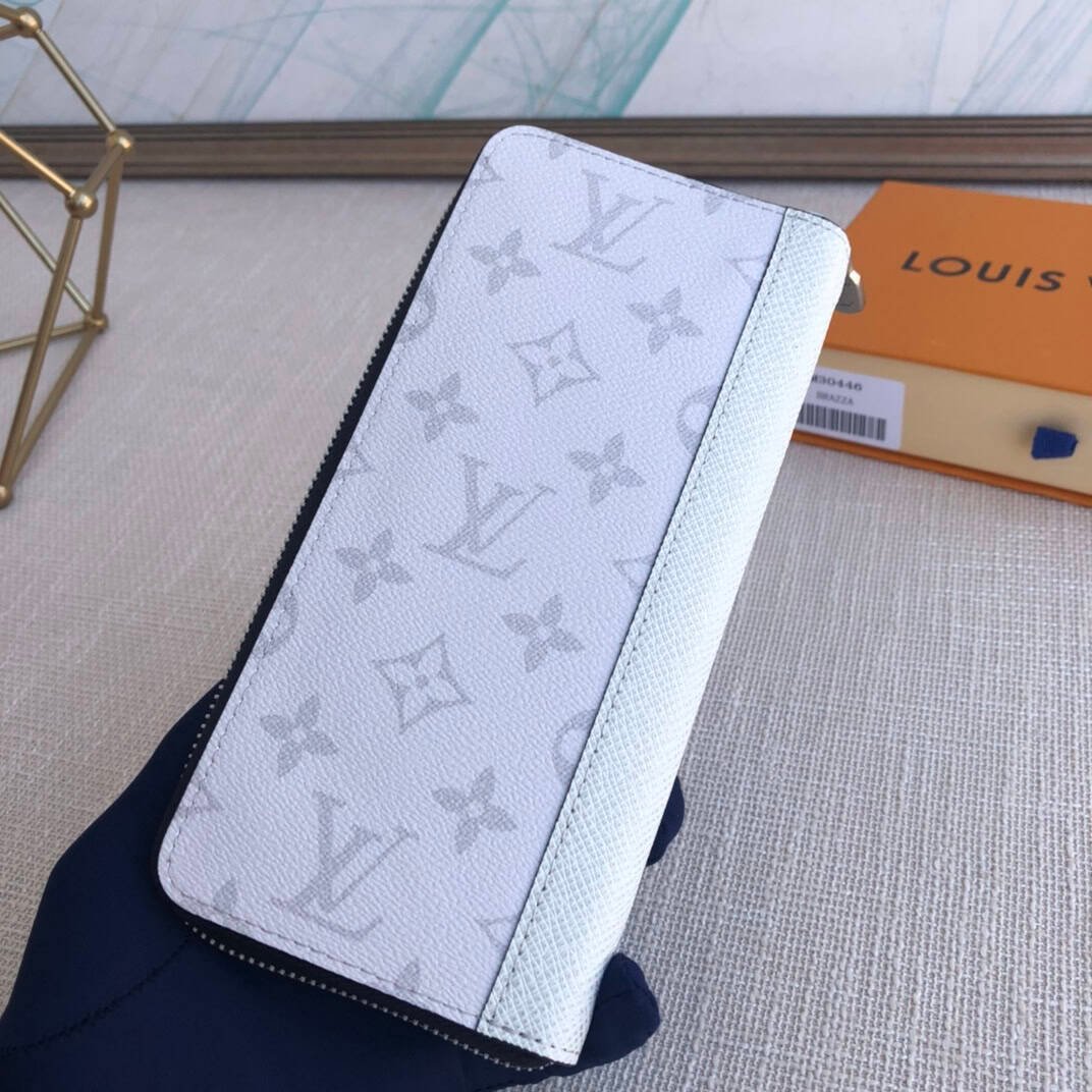 Exclusive real shot! The Taïgarama Zippy Vertical Wallet combines Taïga leather and Monogram Eclipse canvas with a wraparound zipper structure to securely protect the organized interior, featuring an accordion compartment for bills, zipped coin pocket and card slots.