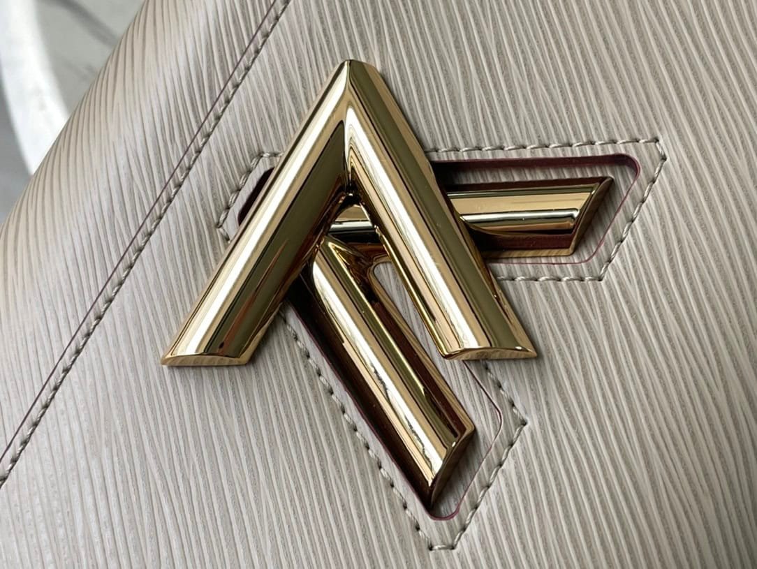 Elephant gray Twist handbags debuted at the 2015 Cruise early spring show and became a new classic of the brand. The Twist Medium Chain Bag is crafted from iconic Epi leather with an LV Twist lock in shiny metal. The wavy bottom cleverly builds ample space, and the sliding chain shoulder strap can be folded over the shoulder or unfolded across the body, making it easy to shine on day and night occasions.
