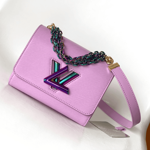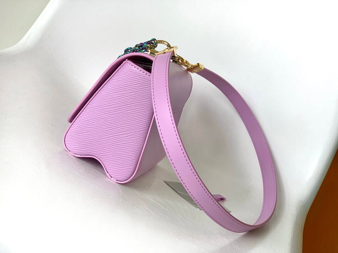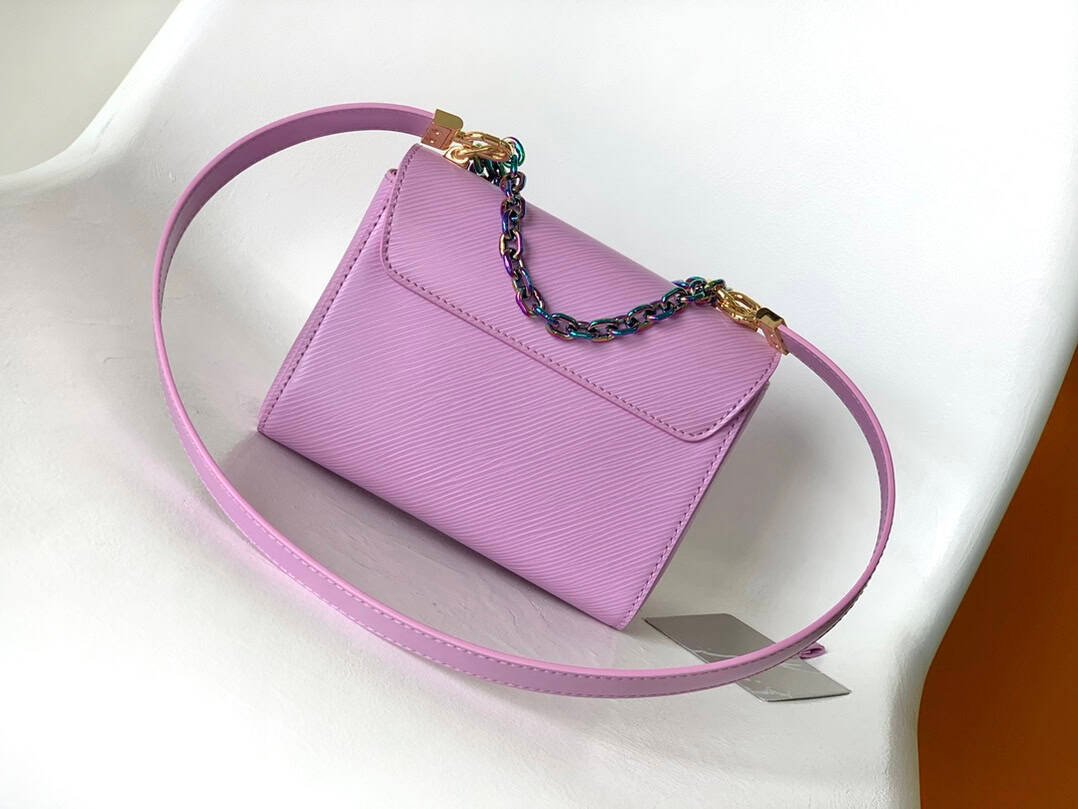 Twist handbag is made of Epi grained leather, conveying the avant-garde edge with colorful and dazzling chains, and extending the same metallic texture to the iconic LV Twist twist lock. The chain and detachable leather shoulder strap offers hand, shoulder and cross-body options.