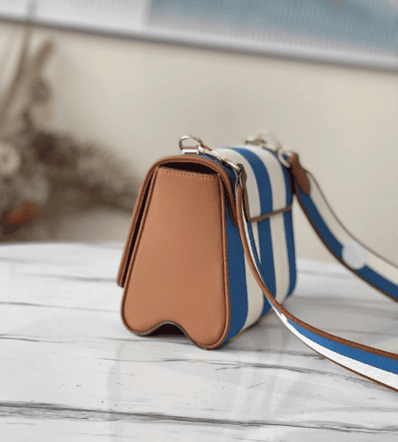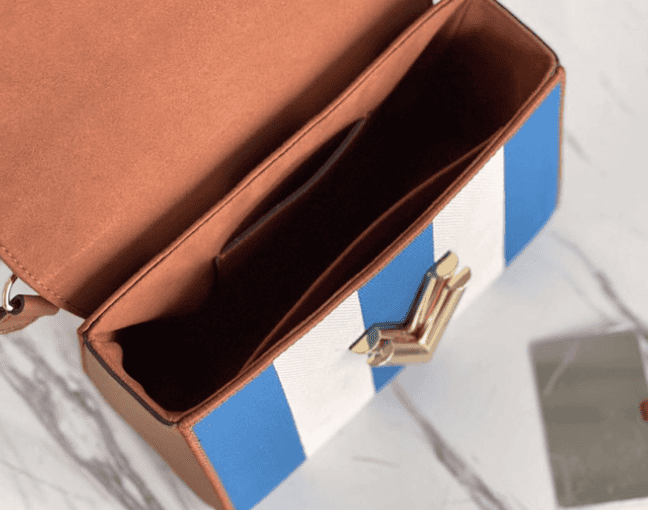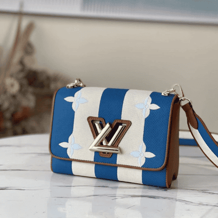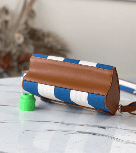 Part of the Parasol capsule collection, this Twist PM handbag stuns in a combination of striped canvas and natural calf leather. The visually striking stripes take on a more sophisticated feel thanks to discrete Monogram Blossoms embroidered along their edges. The wide removable strap enables shoulder carry.