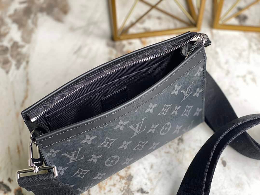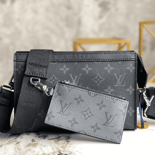 Black flower two-piece men’s bag series Alpha Wearable Wallet combines Monogram Eclipse canvas and leather trim, which can accommodate mobile phones and small wallets. The wide-mouth design and side bellows provide easy access, and the adjustable shoulder strap allows for a variety of carrying options.