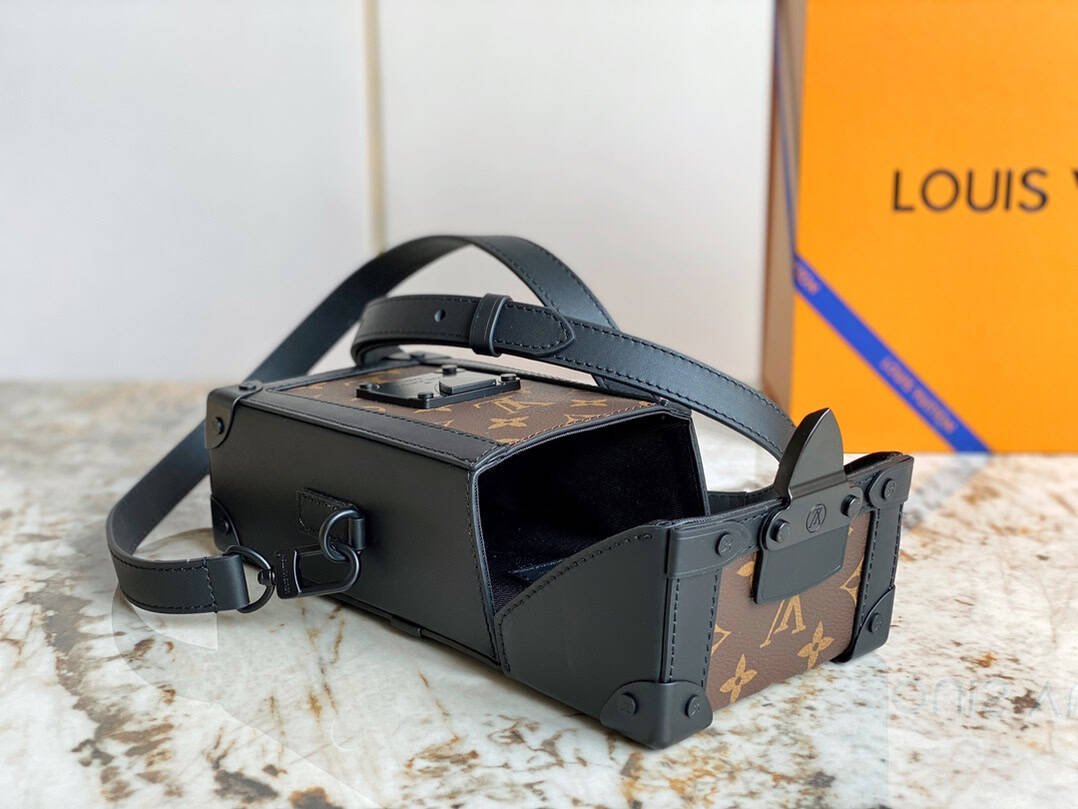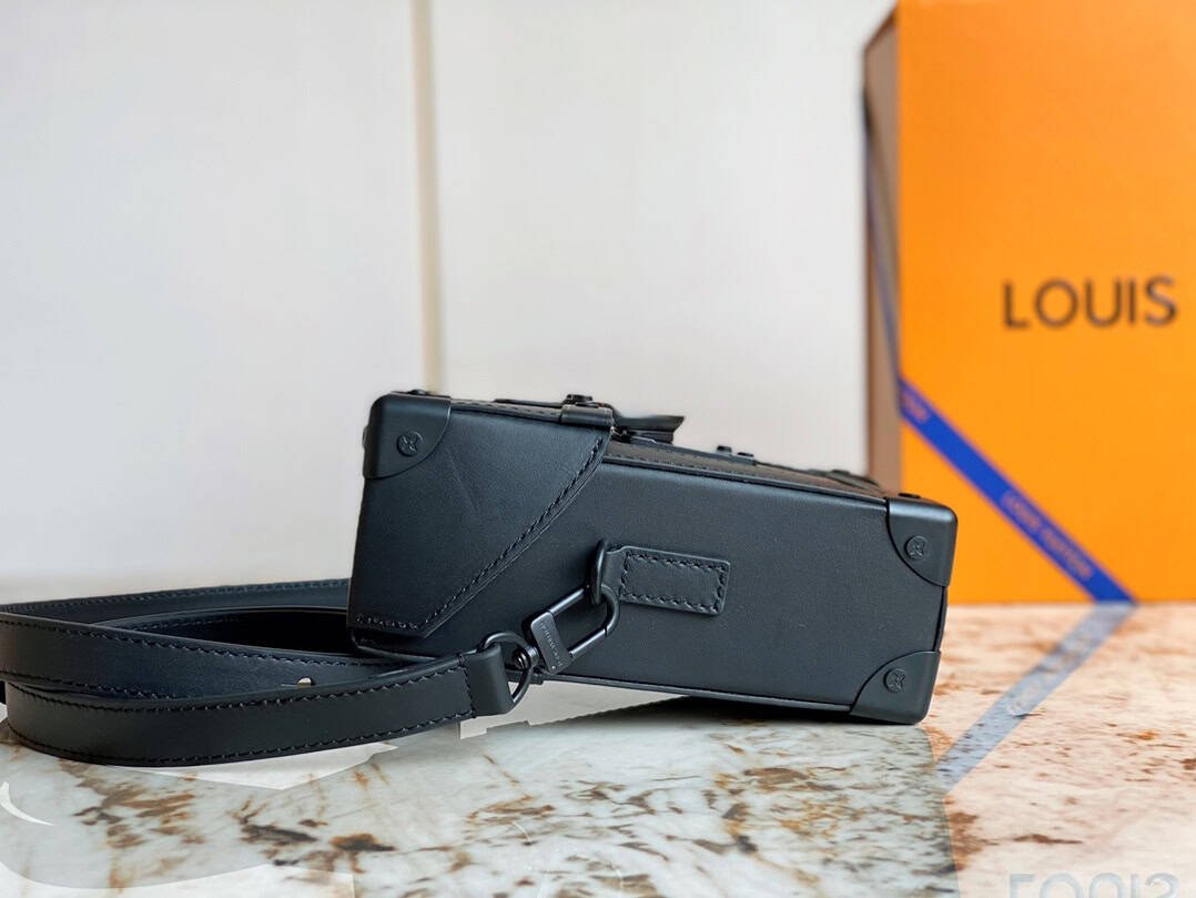 Presbyopic men’s bag mobile phone bag series VERTICAL TRUNK mini handbag Vertical Trunk mini handbag adheres to the design concept rooted in the depths of Louis Vuitton, using Monogram Eclipse canvas to create a square configuration, with rivets and reinforcement bags The corners highlight the brand’s traditional hard case elements. The magnetic flap secures storage, and the detachable and adjustable shoulder strap makes it easy to carry over the shoulder or across the body.