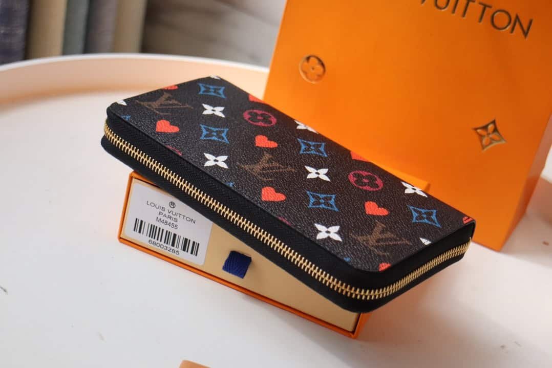 From the Cruise 2021 leather goods, ready-to-wear, shoes and accessories collection, the Game On canvas, inspired by the game of poker, was created from Monogram canvas by Nicolas Ghesquière, Artistic Director of Louis Vuitton Womenswear. Wraparound design holds bills, coins, and cards.