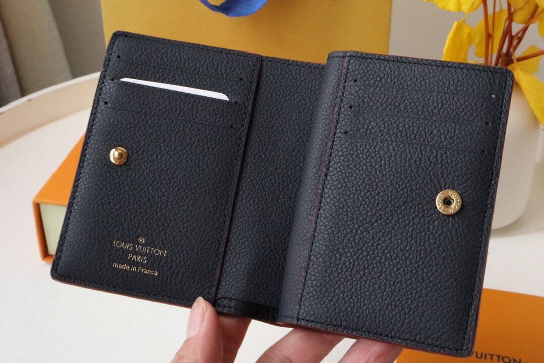 Crafted from Monogram Empreinte soft grained calfskin embossed with Louis Vuitton’s signature Monogram motif, this sleek design is compact yet roomy, with an exterior patch pocket, zipped coin pocket, bill compartment and six credit card slots.