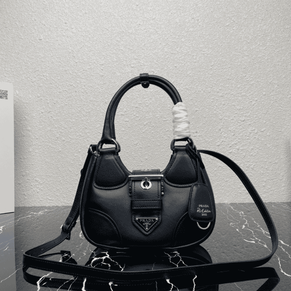 P137 [Top original order] {Sheepskin black}❤︎Pradα Moon Bag New armpit crescent bag 1BA381🛍Classic retro return PRADA PASSAVELA element front, lambskin material silver ring with pin buckle hardware embellishment, the retro fashion is played to the extreme, the real thing is really not too much The bag has a good-looking body, is lightweight, and is perfect for daily necessities. It is fashionable yet playful.