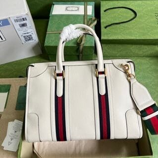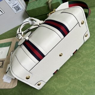 Large full leather handbag, the brand new “Exquisite Gucci” series handbags renew the style of travel bags. White original GG full leather, striped webbing, double G accessories, and the brand’s classic logo jointly interpret the unique style. White Classic GG canvas, white leather trim, gold-toned hardware, red and blue Web double G, detachable ID tag, detachable leather keychain, metal protective feet, side zip closure, interior: 2 zipped pockets, carry handle Hand (8 cm high) detachable shoulder strap (56 cm high) zip closure