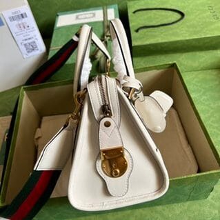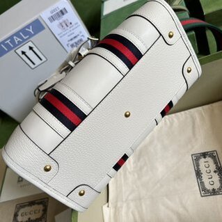 small canvas handbag, the brand new “Exquisite Gucci” series handbags renew the style of travel bags. White original GG full leather, striped webbing, double G accessories, and the brand’s classic logo jointly interpret the unique style. White Classic GG canvas, white leather trim, gold-toned hardware, red and blue Web double G, detachable ID tag, detachable leather keychain, metal protective feet, side zip closure, interior: 2 zipped pockets, carry handle Hand (8 cm high) detachable shoulder strap (56 cm high) zip closure