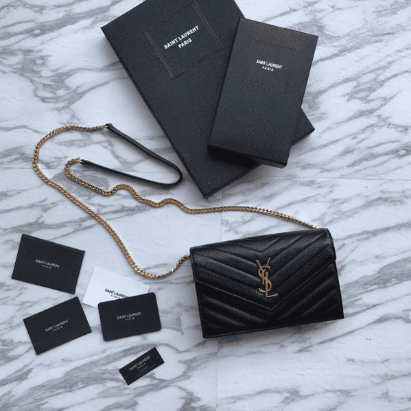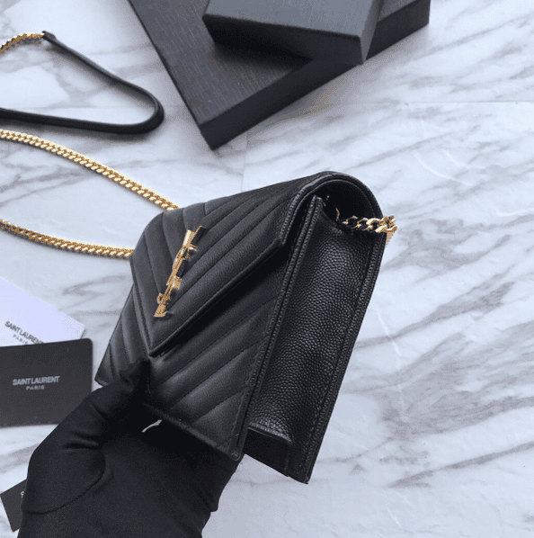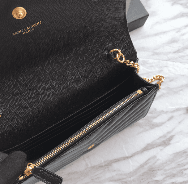 YSL Saint Laurent Caviar Ball Chain Shoulder Bag with Removable Chain Shoulder Strap Can Be Used as a Handbag 6 Card Slots 1 Zippered Coin Bag 1 Banknote Compartment Practical.