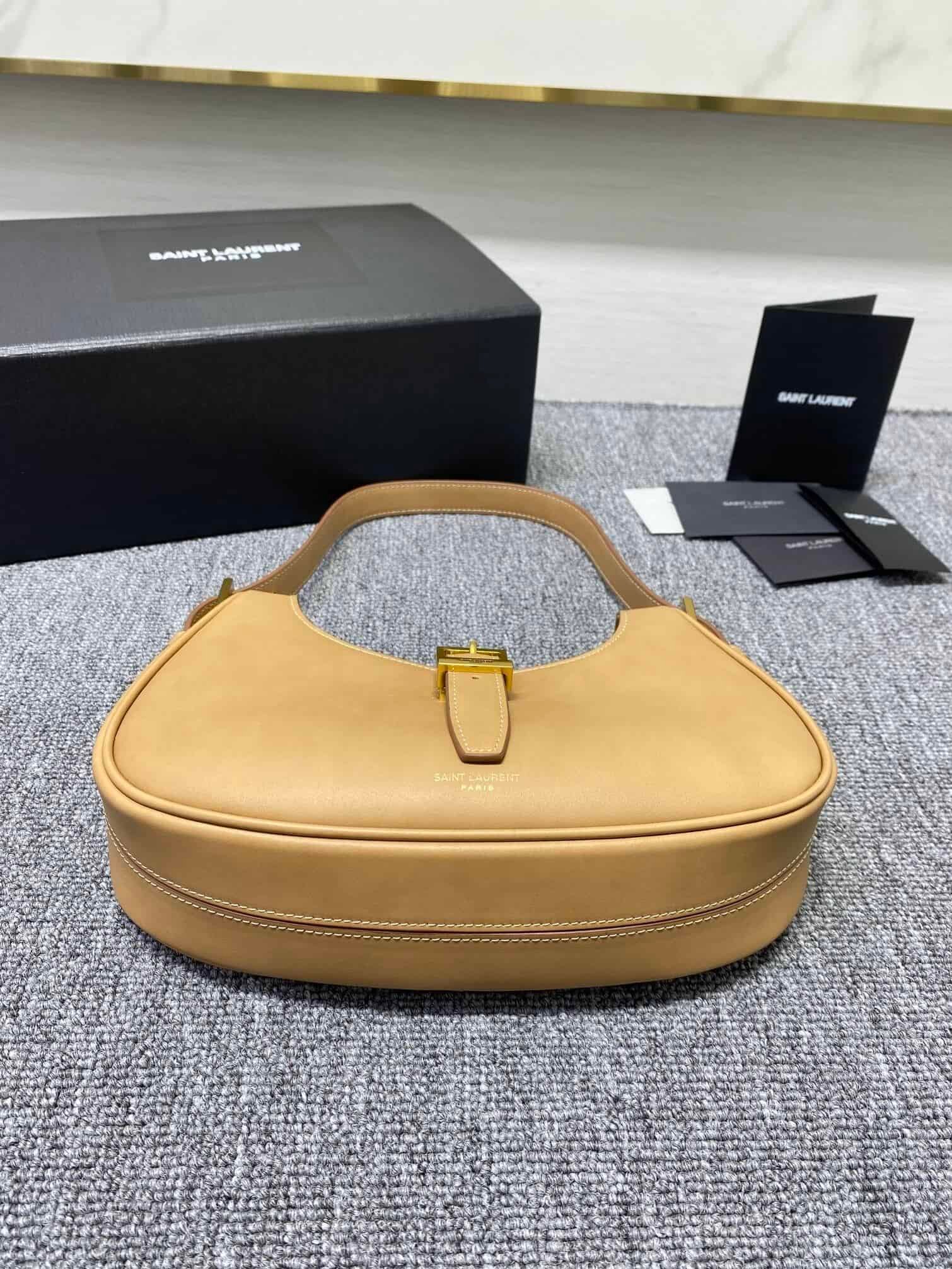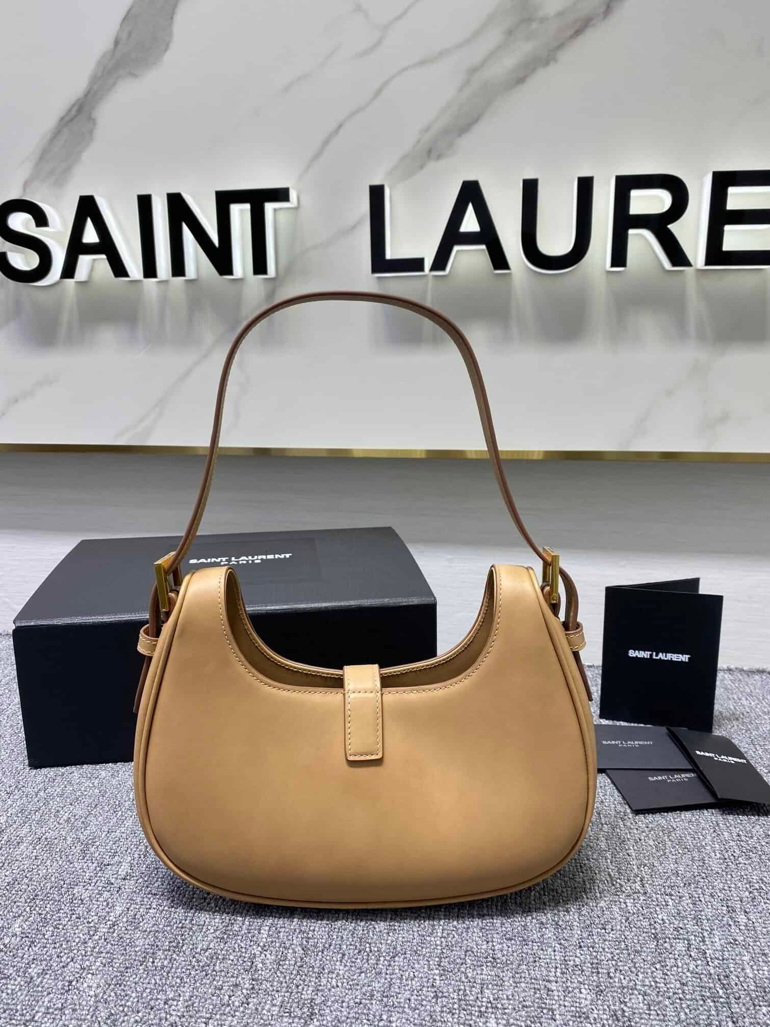YSL Cowhide Texture Armpit Bag – Brown 38844 | Sandra Bags