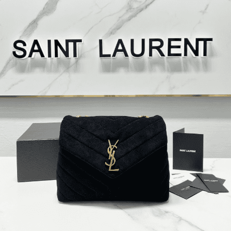 YSL Classic Suede Medium Rectangular Envelope Satchel Classic Soft Shape Front Flap Bag Strap Metal Interlocking YSL Logo Metal and Leather Chain Shoulder Strap with Y-Shaped Stitching