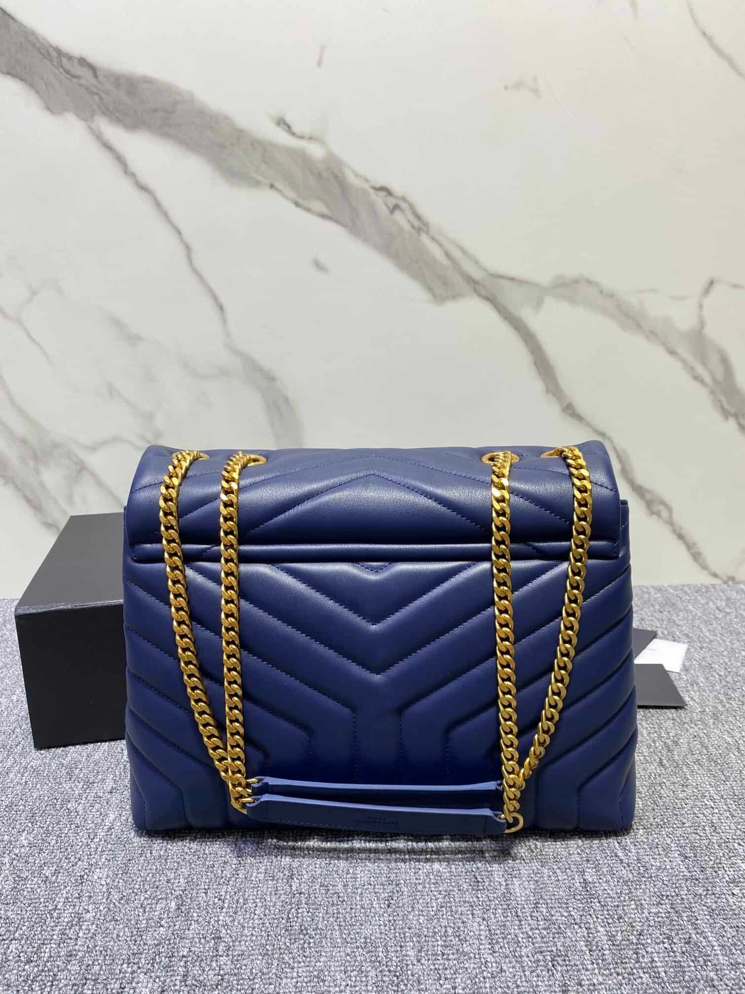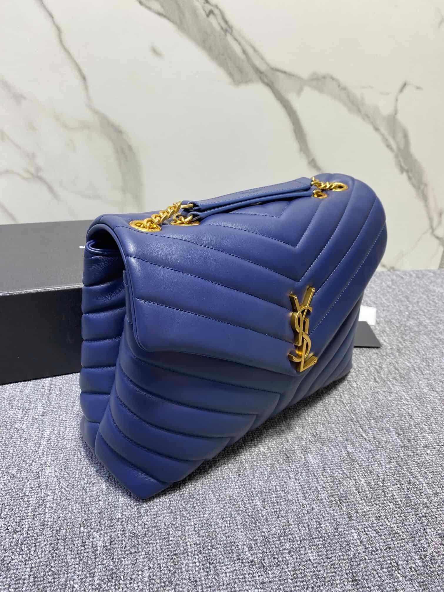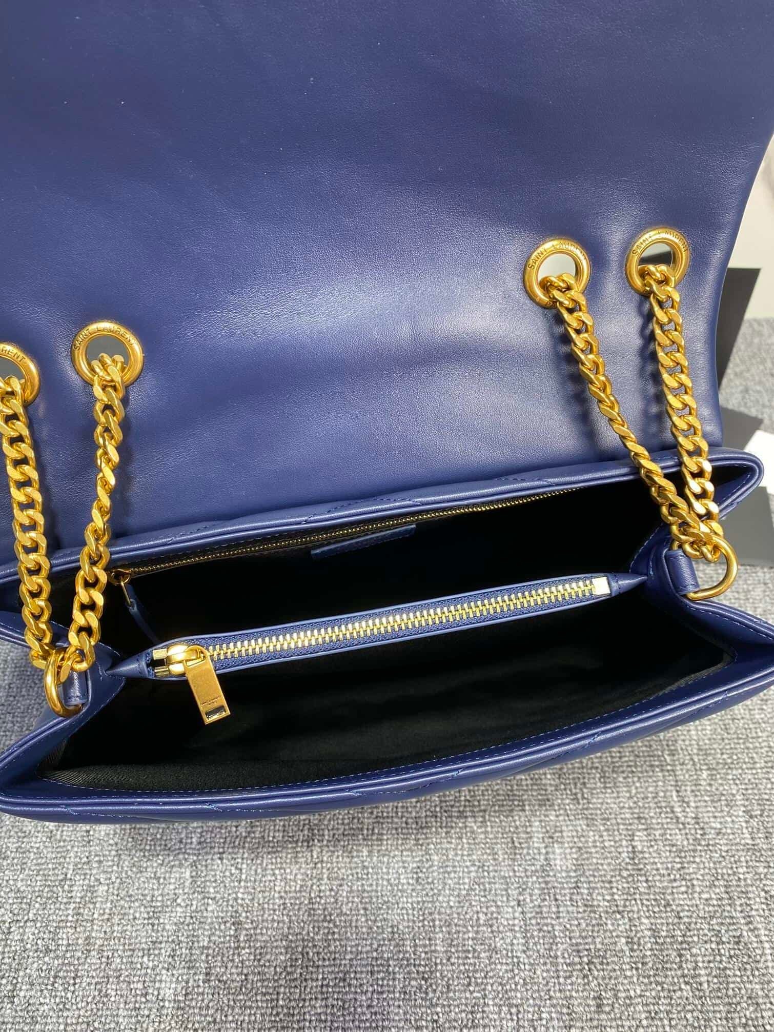 YSL Large Long Envelope Satchel Classic Soft Shape Front Flap Bag Strap Metal Interlocking YSL Logo Metal and Leather Chain Shoulder Strap with Y-Shaped Stitching