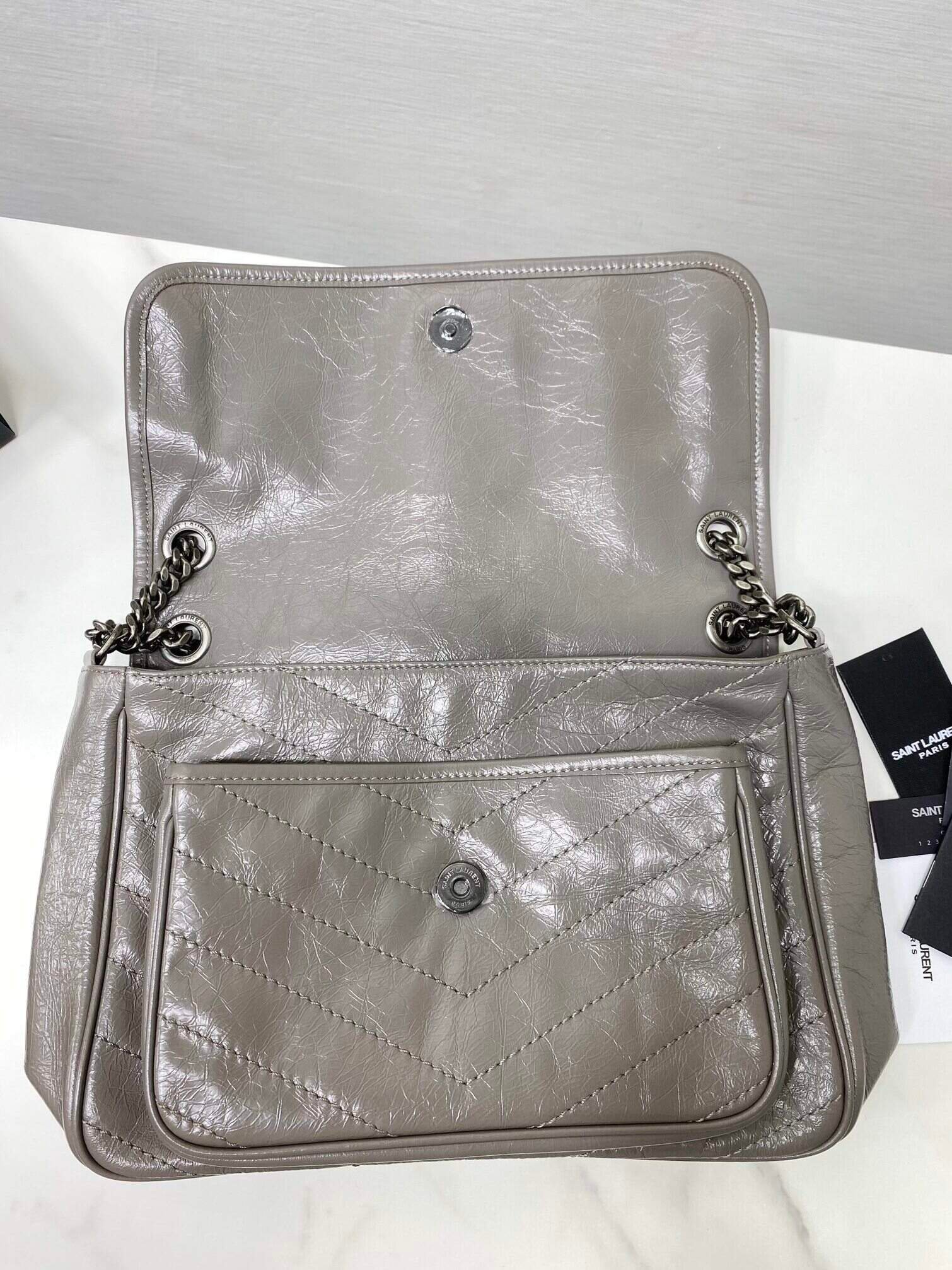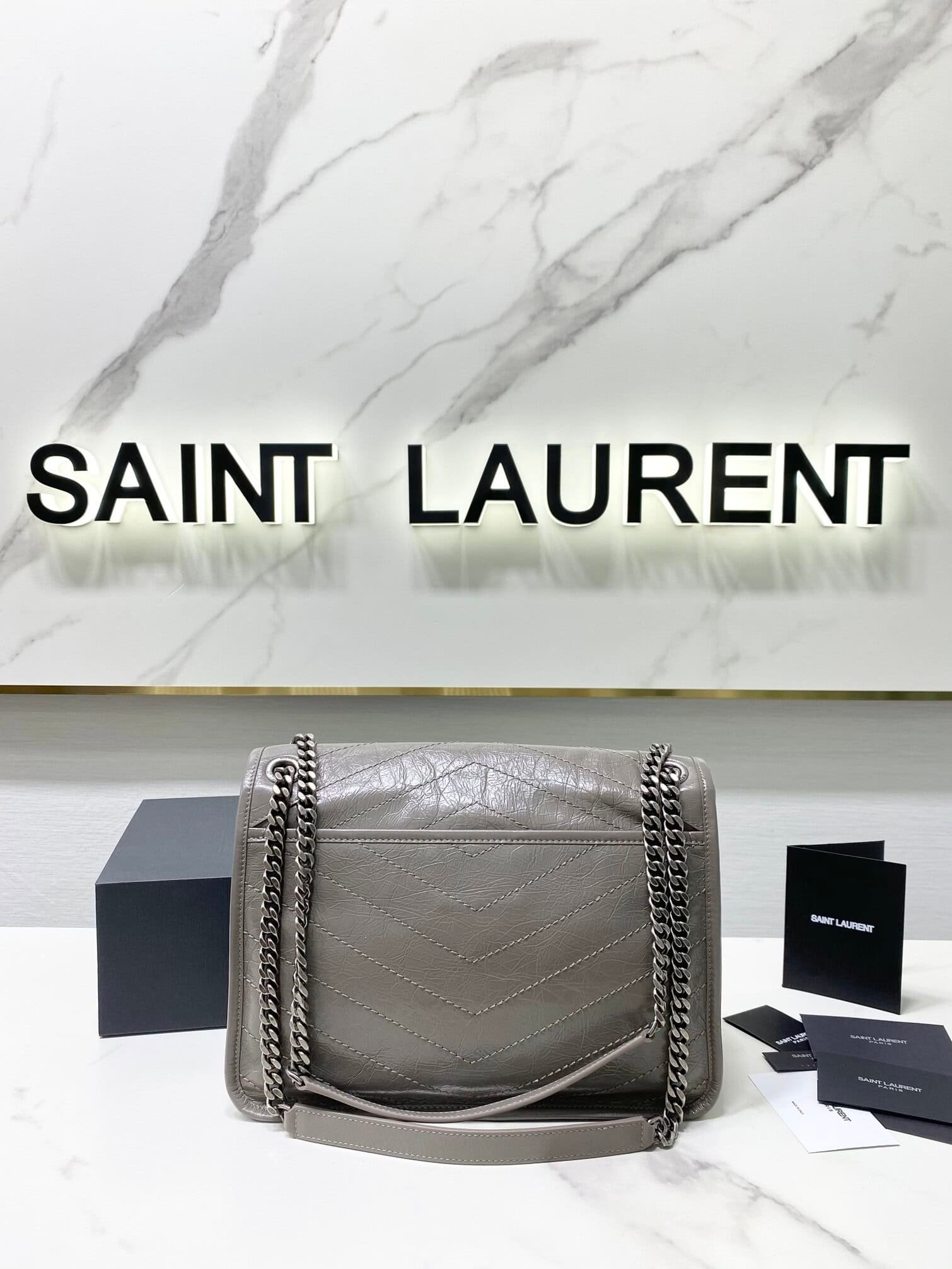 YSL Saint Laurent’s Niki’s Medium Handbag – Light Gray 56107 | Sandra Bags