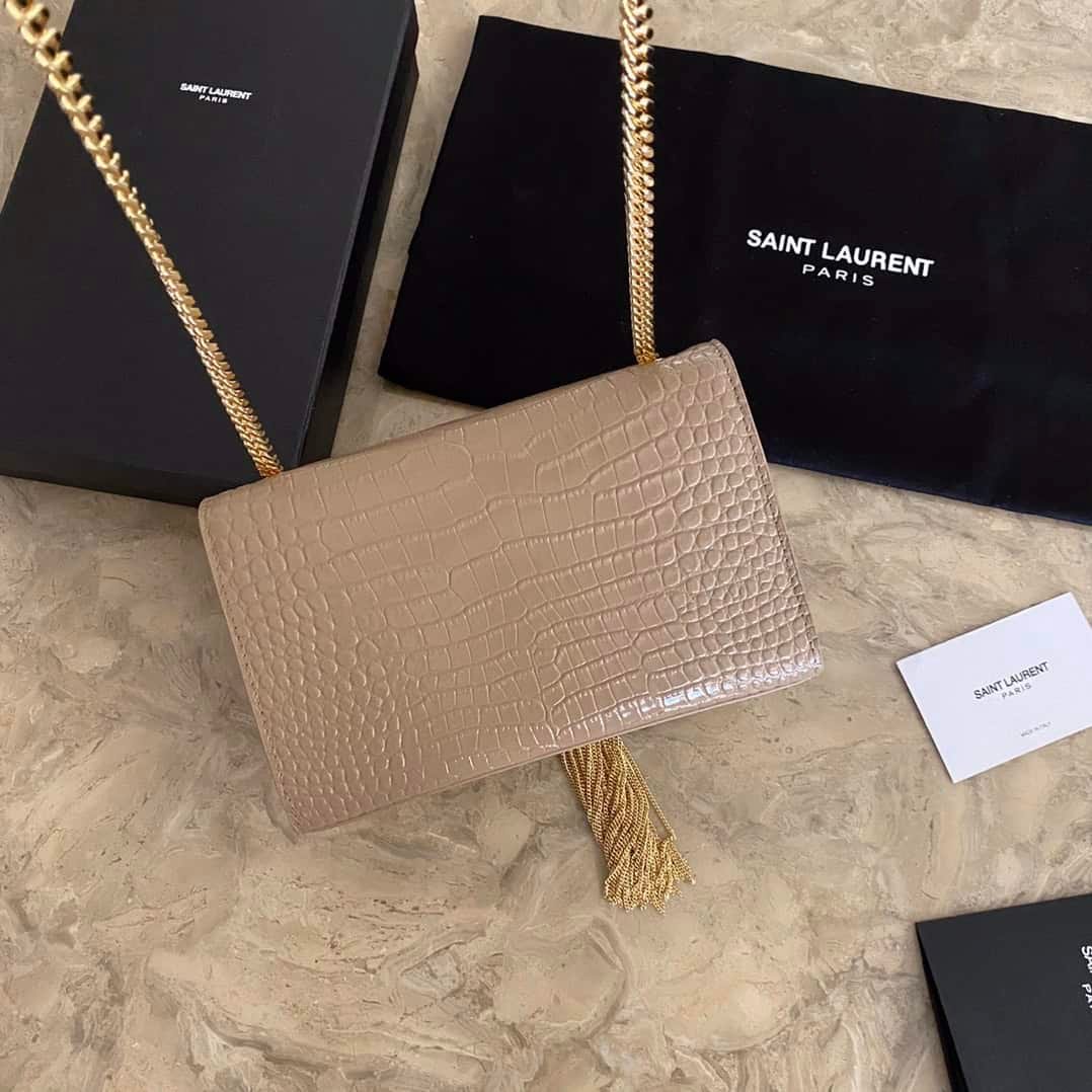 YSL Yves Saint Laurent counter’s latest catwalk style original small crocodile pattern tassel bag, made of top-grade imported cowhide embryos, original molded full-layer cowhide, exquisite workmanship, an excellent item for women to increase their charm and temperament.
