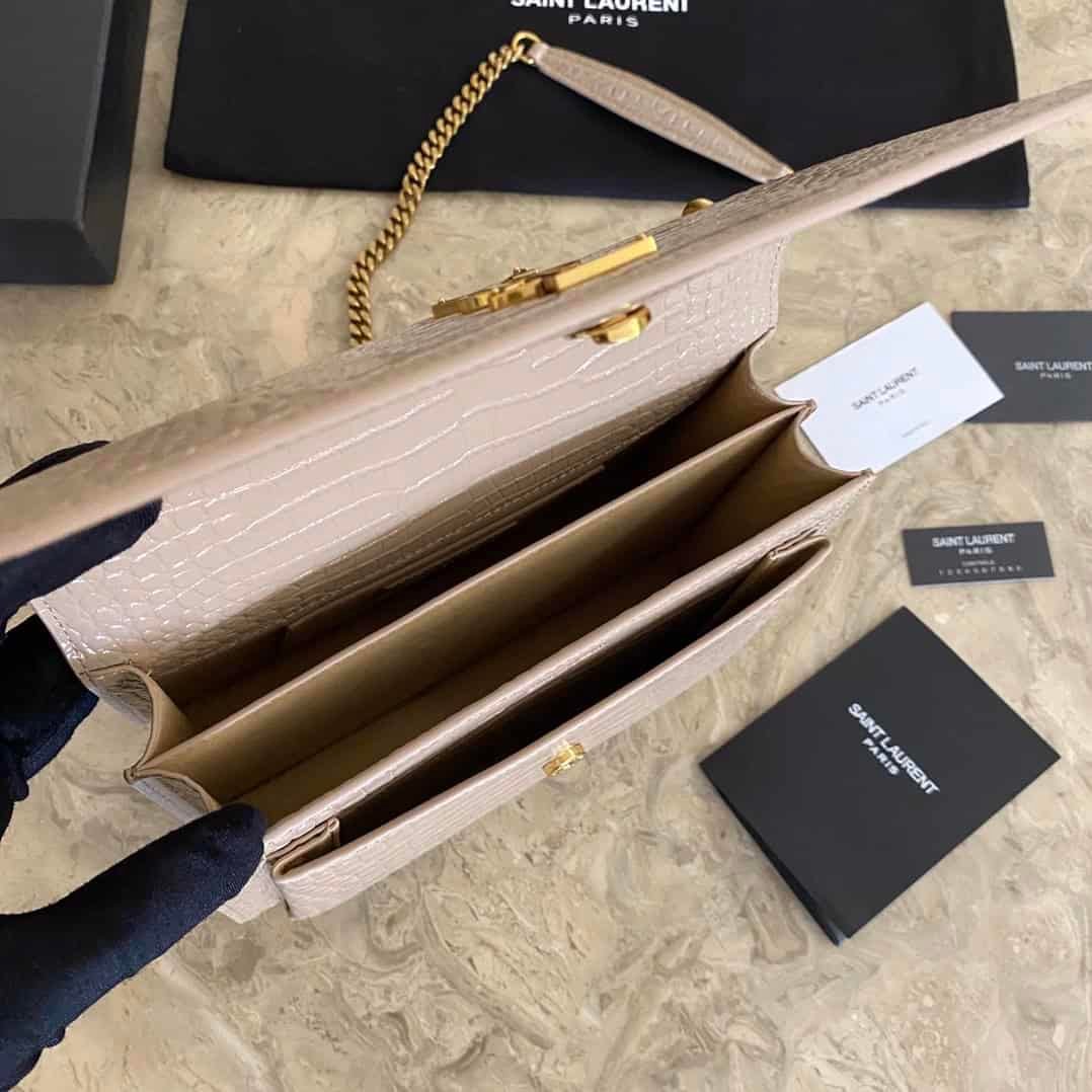 YSL Yves Saint Laurent counter’s latest front flap handbag, top-quality original small crocodile authentic leather, custom-made with accordion pleats on the sides, can be worn cross-body or cross-cross on the shoulder, perfect metal work, super versatile and practical.