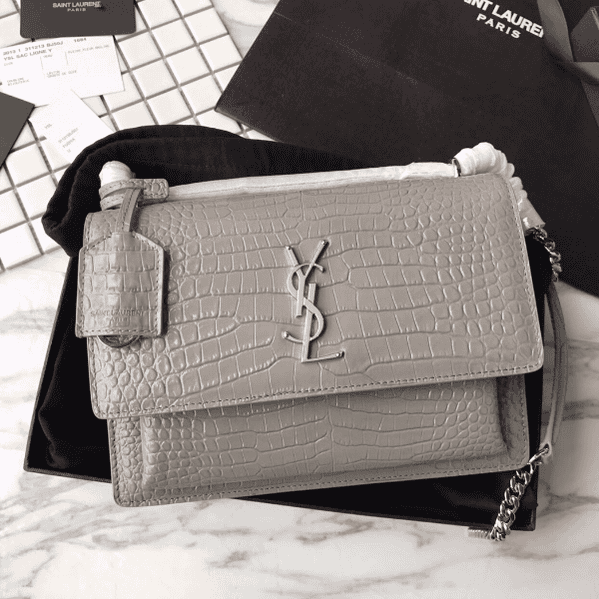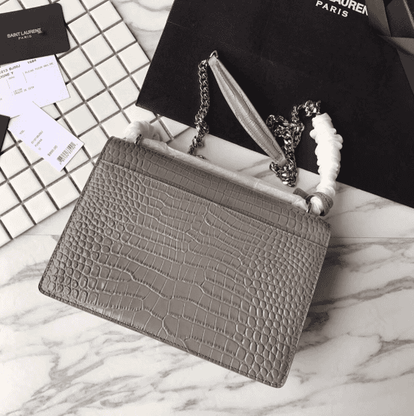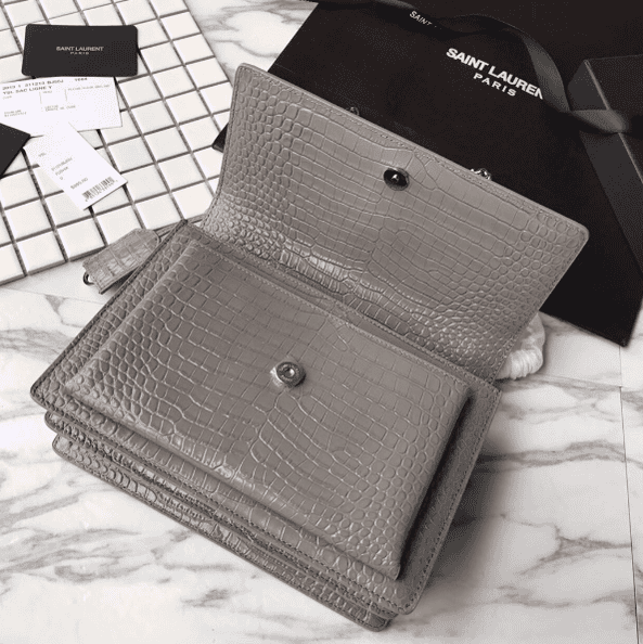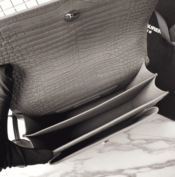 YSL Yves Saint Laurent counter’s latest front flap handbag, top-quality original small crocodile authentic leather, custom-made with accordion pleats on the sides, can be worn cross-body or cross-cross on the shoulder, perfect metal work, super versatile and practical.